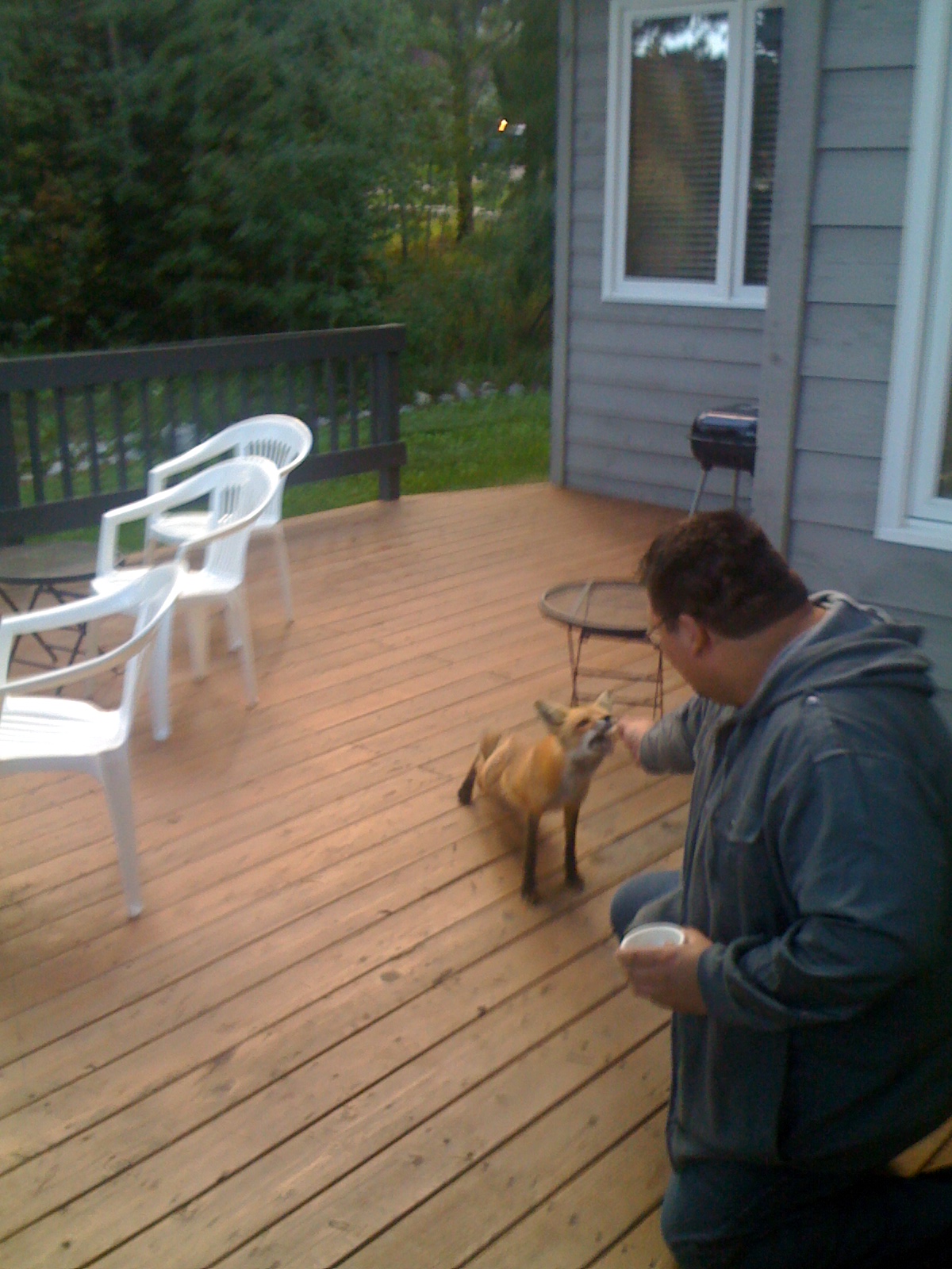 - Feeding a fox from hand in Breckenridge, CO. Very good friends of mine have a house in Breckenridge. They flew me there because they knew, (better than I did), that I needed the encouragement. They were right. (ca August 31)